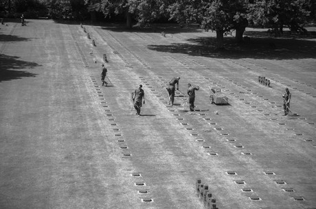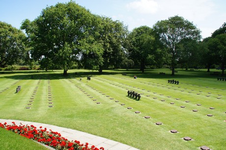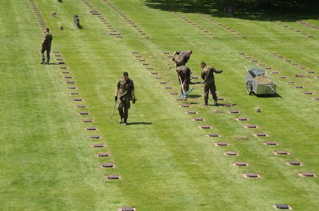 Auf dem größten US-Friedhof gibt es 70.000 Gräber. Auf dem deutschen Friedhof gilt es ca. 70 Hektar umzugraben.